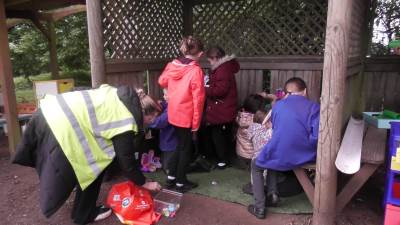 With the help of kind donations from the community and local builders Stonehouse, we now have storage for toys and wellies, a brand new sandpit and lots of loose parts for the children to enjoy. Please look out for requests for loose parts in our weekly newsletter. Finally, please make sure you send your child into school with a waterproof coat and expect them to get a a little soggy and muddy from time to time.
